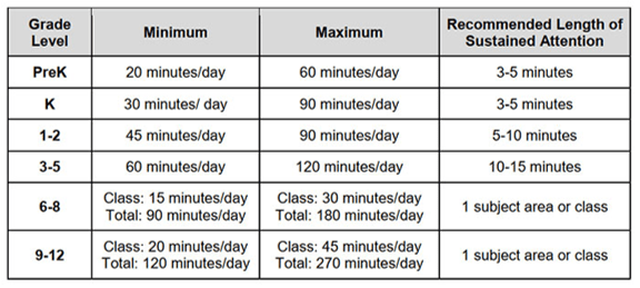 Table 1: recommended home-schooling times for parents during COVID-19 Illinois State Board of Education.